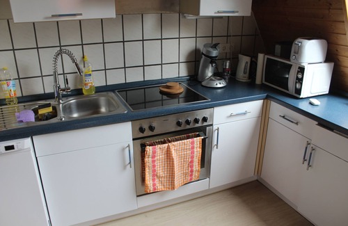 Interior: High-quality fireplace, satellite TV, DVD player, Bluetooth sound system, WiFi, board games. Shutters on the ground floor. Fully equipped kitchen with refrigerator, dishwasher, stove, oven, microwave, toaster, kettle, coffee, spices and everything you could need in a kitchen. Bathroom with washing machine, toilet, urinal, sink and shower. Also iron, ironing board and a clothes line is available. The bedroom beds are always freshly made and each have duvets and pillows. also covers and blankets are available on the sofa bed in the EC. Heating is in demand with the fireplace, a self-sufficient liquid gas heater or electric heating or oil Convector heater.