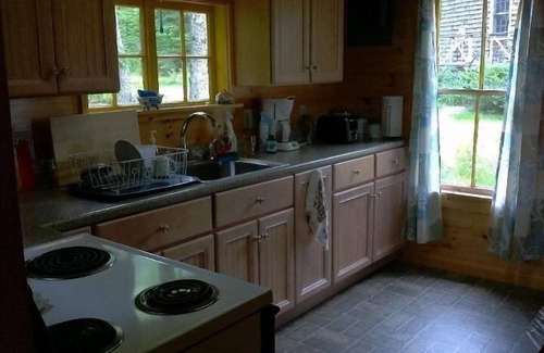 Maison à deux étages, avec 3 chambres à l'étage. Grand salon, petite salle de télévision et coin repas dans un grand espace ouvert. La chambre principale a un lit king size, la deuxième chambre et la troisième chambre ont chacune 2 lits simples, une salle de bain en bas. La cuisine mise à jour est équipée avec cuisinière, réfrigérateur, micro-ondes et cafetière. Salle de bain rénovée en bas avec grande douche et lavabo. La salle de bain a été rénovée en 2002. Grande terrasse enveloppante surplombant Pigs Cove. Parking privé avec un beau long chemin en haut d'une colline jusqu'au chalet Barbecue au charbon et chaises supplémentaires sous la maison. Nous espérons que vous apprécierez notre petit chalet tout le mobilier est collection de nos ancêtres. Veuillez prendre soin d'eux. Nous esperons que vous aimez votre sejour!