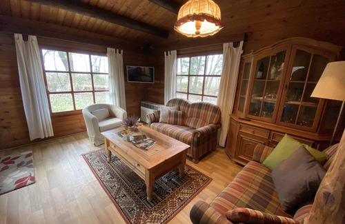 Layout: Ground floor: (Living room(TV(flatscreen, satellite), seating area), Kitchenette(dining table, electric kettle, toaster, cooker, coffee machine(filter), microwave, fridge), bedroom(double bed), bedroom(bunk bed), bathroom(shower, washbasin, toilet)) heating, terrace(private), garden(shared with other guests), garden furniture, BBQ(shared with other guests, charcoal), parking, pond, deckchairs, sand pit(shared with other guests), play equipment(shared with other guests), bicycles available(paid, on request)