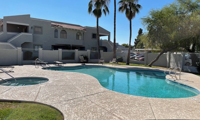 Les meilleurs tarifs pour Tempe copropriété commencent à partir de $167 par nuit et comprennen Activités sportives, Blanchisserie, Parking, Piscine privée, Jacuzzi, Internet, Climatiseur, Piscine, Balcon/Terrasse, Foyer/Chauffage, Divertissement, Barbecue/Cuisine en plein air, Adapté aux enfants, La télé, Sécurité sureté, Literie/Linge de maison, Cuisine avec toutes les autres installations. MLFR correspond à chaque voyageur avec son hébergement parfait, que vous voyagiez avec un groupe, des amis, une famille ou des animaux de compagnie.