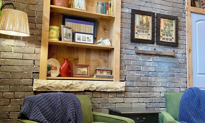 When entering The Loft you will see an open concept with a 15 ft ceiling and brick wall with an outline of the large back door and windows of the original building. The decor theme is local heritage with a focus on our farming community.