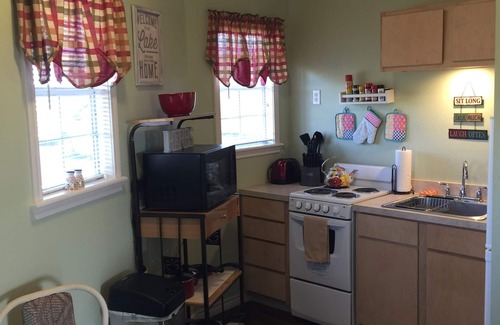 Entièrement meublé avec un canapé rembourré, des meubles rustiques et une cuisine bien équipée, vous ne manquerez de rien pendant votre séjour, que ce soit un week-end, une semaine ou même un mois! Fiberholics adorera passer du temps dans le Fiber Arts Studio & Yarn Shop! Rejoignez le cercle du tricot ou de la filature pendant votre séjour. Ou inscrivez-vous aux cours et planifiez un week-end comme retraite de fibres!