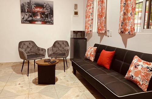 Cette maison de vacances au charme incontestable à Las Terrenas est la solution idéale pour explorer les environs en toute simplicité. Grâce à la présence d'un parking sur place, vous pourrez décider d'y garer votre voiture et profiter d'une balade de 8 minutes jusqu'à Centre commercial Plaza Rosada ou reprendre votre véhicule pour le trajet de 6 minutes jusqu'à Plage de Punta Popy.