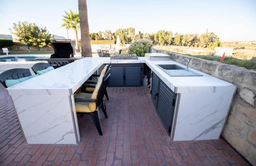 Situé à Oroklini, l’hébergement Dene Hollow Oroklini offre une vue sur la mer. Il propose une piscine extérieure ouverte en saison, un jardin, une terrasse et une connexion Wi-Fi gratuite. Cette villa 5 étoiles possède un parking privé gratuit et est à 1,1 km de : Plage d’Oróklini. Cette villa avec climatisation se compose de 4 chambres, d'un salon, d'une cuisine entièrement équipée avec un réfrigérateur et une machine à café, ainsi que de 2 salles de bains avec une douche et des articles de toilette gratuits. Des serviettes et du linge de lit sont disponibles. L’établissement Dene Hollow Oroklini dispose d’un bain à remous. Vous pourrez pratiquer la randonnée dans les environs. Vous séjournerez à respectivement 6,4 km et 6,5 km de ces lieux d’intérêt : Place de l'Europe et Port de plaisance de Larnaca. L'aéroport le plus proche (Aéroport international de Larnaca) est à 11 km.