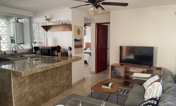 Relax in Mazatlan with your family in this fully equipped, centrally located apartment. This spacious unit features 2 bedrooms, 1 bathroom, a kitchen, dining area, and living room.