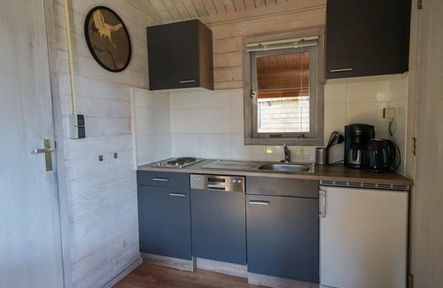 Dans la cuisine, vous trouverez un réfrigérateur, un lave-vaisselle et une cafetière.