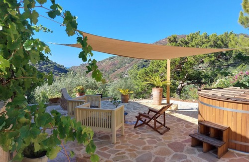Sur notre domaine nous louons une maison en pierre avec une belle vue sur la vallée verdoyante et la mer.