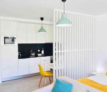 L’hébergement Domus da Ria se trouve à Aveiro, à respectivement 1,3 km et 1,3 km de ces lieux d’intérêt : Centre de congrès d'Aveiro et Université d'Aveiro. Il propose des équipements tels qu’une connexion Wi-Fi gratuite et une télévision. Cet appartement est à respectivement 9,4 km et 49 km de : Stade Municipal d'Aveiro et Château de Santa Maria da Feira. Cet appartement avec climatisation se compose de 1 chambre séparée, d'une cuisine entièrement équipée avec un réfrigérateur et un lave-vaisselle, ainsi que de 1 salle de bains. Vous séjournerez à proximité de ces lieux d’intérêt : Aveiro Old Captaincy, Church of Vera Cruz et Museu de Aveiro. L'aéroport le plus proche (Aéroport de Porto-Francisco Sá-Carneiro) est à 87 km.