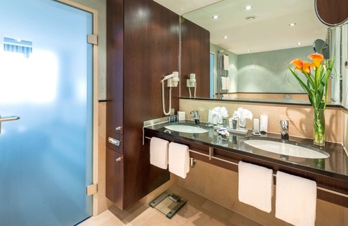 Dorint Main Taunus Zentrum Frankfurt/Sulzbach possède 282 chambres comprenant des coffres-forts suffisamment grands pour accueillir un ordinateur portable et des journaux gratuits. Les chambres disposent d'un coin salon séparé. Les lits sont préparés avec de la literie de qualité supérieure. Une télévision à écran plat donne accès aux chaînes par satellite et propose des films à la carte. Les salles de bain comprennent une baignoire ou une douche, des articles de toilette gratuits et un sèche-cheveux.