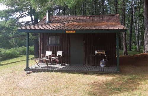 A small open concept cabin with kitchenette . Small fridge .induction hotplate coffee maker . Bbq . 1 bath . Nice covered deck ..160 degree view of the Beautiful Miramichi river with clean waters for swimming , kayaking , Canoeing and ten minute drive to Vickers tubing with the best tubes and arguably the best tubing in NB ..The 11 acre island is yours to explore with walking paths and an active pair of nesting bald eagles .