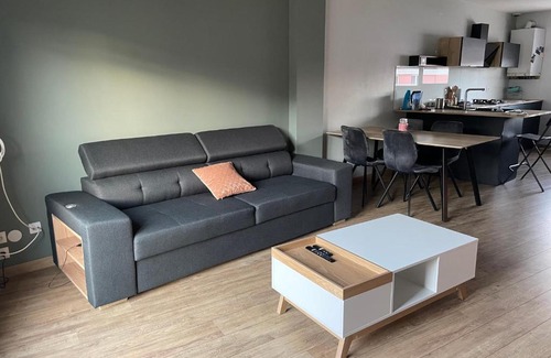 Featuring city views, Duplex 71 m2 balcon Amnéville, Metz, Thionville, Luxembourg provides accommodation with a terrace and a balcony, around 19 km from Thionville train station. The property features mountain and garden views, and is 27 km from Metz Train Station. This apartment is equipped with 1 bedroom, a kitchen with a fridge and an oven, a flat-screen TV, a seating area and 1 bathroom equipped with a shower. Towels and bed linen are provided in the apartment. Centre Pompidou-Metz is 27 km from the apartment, while Parc des Expositions de Metz is 31 km away. The nearest airport is Metz-Nancy-Lorraine Airport, 42 km from Duplex 71 m2 balcon Amnéville, Metz, Thionville, Luxembourg.