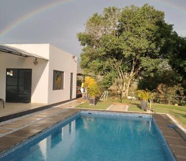 L’hébergement El Tesoro se trouve à Guaduas. Cette maison de vacances comprend une piscine privée, un jardin, un barbecue, un parking privé gratuit et une connexion Wi-Fi gratuite. Cette maison de vacances compte 3 chambres, un salon comportant une télévision à écran plat, une cuisine entièrement équipée et 4 salles de bains. Vous pourrez profiter d’une piscine extérieure sur place et pratiquer la randonnée à proximité. L'aéroport le plus proche (Aéroport international El Dorado) est à 120 km.