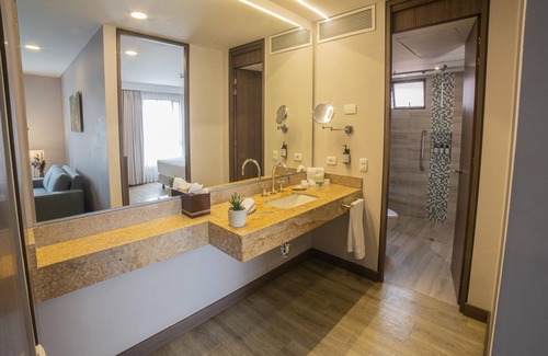 Embassy Suites by Hilton Bogota - Rosales possède 96 chambres comprenant la climatisation, des minibars et des coffres-forts suffisamment grands pour accueillir un ordinateur portable. Les chambres disposent d'un coin salon séparé et comprennent des canapés-lits. Linge de lit avec des draps en coton égyptien, une couette en duvet d'oie et de la literie de qualité supérieure. Une télévision à écran plat 37 pouces donne accès aux chaînes par câble. Un réfrigérateur et une cafetière ou une bouilloire sont à votre disposition dans les chambres. Les salles de bain comprennent une douche, des peignoirs, des articles de toilette gratuits et un sèche-cheveux.