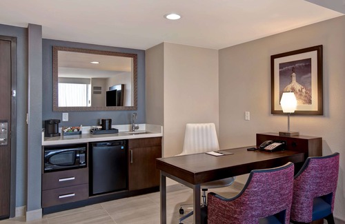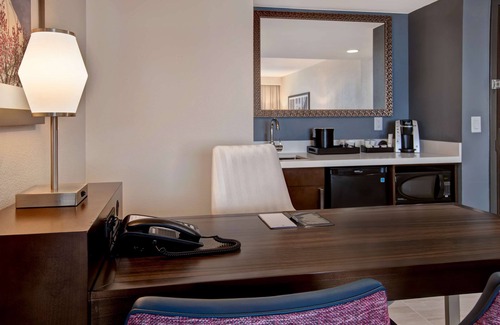 Embassy Suites by Hilton Oklahoma City Northwest possède 216 chambres comprenant des coffres-forts suffisamment grands pour accueillir un ordinateur portable et une cafetière ou une bouilloire. Les lits sont dotés de matelas avec surmatelas. Une télévision à écran plat 55 pouces propose des chaînes thématiques par câble.