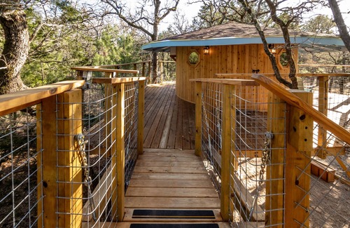 Enchanting Dog-Friendly Treehouse- The Elf's Aerie in the Lost Pines Shire is located in Paige. Enchanting Dog-Friendly Treehouse- The Elf's Aerie in the Lost Pines Shire provides accommodation, featuring Balcon/Terrasse, Divertissement, Cuisine, among other amenities. This Cabine features Balcon/Terrasse, Divertissement, Cuisine, to make your stay a comfortable one.