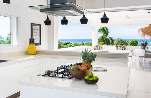 Cette villa offre un éventail complet de services avec conciergerie, ménage et sécurité, incluant un responsable de villa sur place 24h/24, située en haut d'une colline dans une communauté sécurisée. Elle dispose d'une piscine et donne accès à la plage. Son design favorise la lumière naturelle, fusionnant intérieur et extérieur. L'agencement des espaces libère les perspectives, créant une villa spacieuse et tournée vers l'océan. C'est la retraite de luxe idéale pour un week-end ou une semaine.