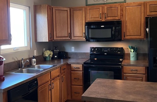The laundry room is located downstairs and also includes access to one garage stall. The kitchen is fully stocked with the necessities for cooking. If you aren’t in the mood to cook, no worries, there are plenty of nearby restaurants! Just 2 blocks away you will find a park with playground equipment and a basketball court. It is surrounded by its own walking trail through the neighborhood. Chalco Hills Recreation area is a 3 minute drive away and includes a nice dog park where you can let your pets get some exercise!