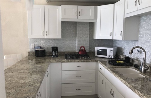 L'unité elle-même a une cuisine complète, grande salle avec un canapé-lit queen, chambre des maîtres privée avec lit King et salle de bain partagée. Stationnement pour un véhicule à l'intérieur d'un terrain privé fermé. Draps de luxe et literie fournie. Gel douche et shampoing / conditionneur gratuits.