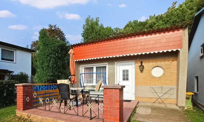 À environ 200 m de la plage de sable fin Boddenstrand se trouve, au sein d'un petit lotissement et sur le terrain voisin séparé des propriétaires, la maison de vacances d'environ 26 m², simplement équipée, pouvant accueillir jusqu'à 3 personnes. La gare et une fumerie populaire ne sont qu'à quelques minutes à pied.La maison de vacances dispose d'un salon/chambre à coucher combiné (armoire-lit double, canapé-lit, petite table à manger avec chaises, TV à écran plat, radio/lecteur CD, radiateur à huile), d'une petite cuisine (plaques de cuisson électriques, réfrigérateur, cafetière, grille-pain), d'une salle de bain avec douche/WC Regenwald ainsi que d'une terrasse meublée avec barbecue. Un parking public se trouve à environ 20 m, il est possible de s'arrêter devant le terrain pour charger et décharger.Le prix total comprend le nettoyage final, les frais d'eau et d'énergie ainsi que les draps et les serviettes. Les animaux domestiques ne sont pas autorisés dans cet objet.