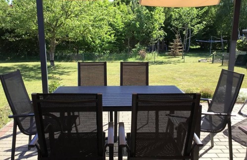 Bright and spacious vacation home near the Hanseatic city of Stralsund with three bedrooms and a conservatory.