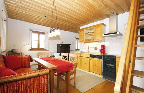 Vom Essplatz haben Sie einen herrlichen Ausblick auf die Chiemgauer Berge. Sie wohnen in einer sehr familiär und persönlich eingerichteten Maisonettewohnung.