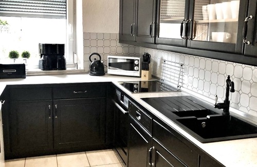 La ferme romantique et meublée avec amour avec environ 250 m² de surface habitable vous invite à vous détendre et vous détendre jusqu'à 18 personnes. La maison est équipée de 4 chambres triples, 1 chambre double, 2 chambres simples et 2 canapés-lits, une salle de bain moderne avec toilettes, 1 douche avec toilettes invités, une cuisine entièrement équipée avec 2 coins repas et tout confort, un salon confortable, une terrasse sur le toit et une connexion Wi-Fi gratuite. La famille Ziegler vous souhaite un agréable séjour