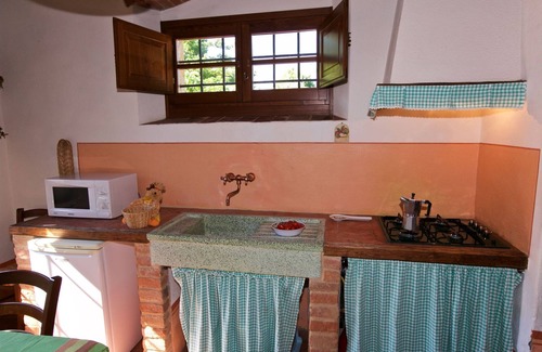 Dans le Valdichiana, un joli agritourisme avec sept appartements où vous pouvez profiter du calme, du silence, de la nature et de la culture. La restauration de cette magnifique ferme a été effectuée dans le respect de l'architecture originale. L'appartement Leccio a un plafond voûté ainsi que des meubles et des lits toscans en fer forgé. Cest la parfaite association d'une ambiance campagnarde et du confort moderne. L'appartement a sa propre terrasse avec du mobilier de jardin et il y a une piscine. Pour les hôtes, il y a également un living commun avec une cheminée; idéal pour passer une agréable soirée. Le propriétaire peut organiser, sur demande, des randonnées en voiture et à bicyclette pour Cortone, le Valdichiana, Arezzo, Sienne et la Ombrie. Dans les environs, il existe de nombreuses possibilités pour faire du vélo, vous promener ou pêcher dans le petit étang de l'agritourisme.