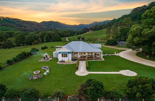 Una verdaderamente magnífica granja de 50 acres establecida en Byron Bay Hinterland (Byron Shire). Un lugar especial para que su familia esté junta sin todas las distracciones de la ciudad; un lugar para compartir tiempo con otras familias; o un momento para que los amigos disfruten juntos de la compañía en los hermosos Northern Rivers. No hay razón para irse si no quiere. Relájese en el pontón de la presa durante el día, o en el lujoso spa para 6 personas situado debajo del pabellón de las glicinas, y siéntese alrededor de la fogata de arenisca por la noche.