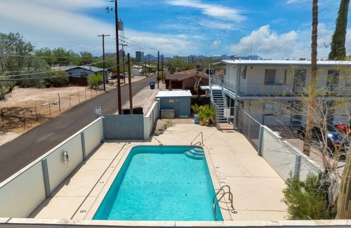 *** The studio is 100% private and shares no common spaces. The rent is $1,195 and includes all utilities, Wi-Fi, the pool and parking. Recently remodeled this is a quiet community. On-site laundry available - we use the Pay Range app for coinless operation for the washer and dryer machines. Walk to U of A, cafes and coffee shops, restaurants, shopping, shops, electric bicycle day rental located across the street from the property. Close proximity to Banner Health, Tucson Medical Center (TMC), hospitals, downtown, Tucson International Airport, Davis Monthan AFB is a short 15-minute drive.
