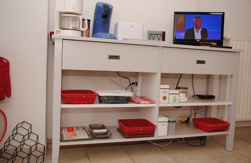 avec gazinière, réfrigérateur / congélateur, micro-onde, évier 1 bac, cafetière, bouilloire électrique, grille-pain, vaisselle (inventaire) lave-linge, lave-vaisselle, aspirateur clic-clac, téléviseur.