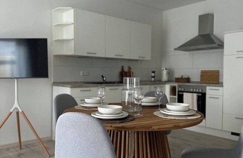 Welcome to our stylish holiday flat at Rüstersiel Harbour in Wilhelmshaven! This newly renovated ground floor flat offers you a cosy temporary home with a fenced garden, ideal for your four-legged friend. Enjoy the fully equipped kitchen and relax on the terrace with a barbecue in the sunny garden. With 2 beds, the flat is perfect for couples. Experience wonderful days in this oasis of well-being – a perfect retreat by the water.
