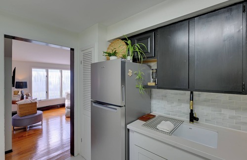 Cette location avec 1 chambre et 1 salle de bain compte également la climatisation et un bureau. Connectez-vous à Internet ou installez-vous confortablement devant la télévision. Parmi les équipements de salle de bains, vous trouverez un sèche-cheveux et des serviettes. Dans la cuisine, vous trouverez une plaque de cuisson et un réfrigérateur, mais aussi une cafetière, des ustensiles de cuisine et des épices. Il y a même une laverie, vous pourrez donc voyager un peu plus léger. Parmi les autres équipements et services, vous trouverez des draps, une planche à repasser, sur demande et chauffage.