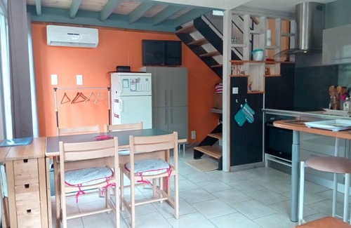 Séjours cuisine, salle de bain , 2 chambres plus une mezzanine (1 grand lit en 140 , 2 lits en 90 ,canapé convertible ou un lit bébé), espace privatif, terrasse avec table de pique-nique, parasol et barbecue a gaz.