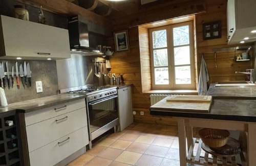 Intérieur: 1 réfrigérateur, 1congélateur réfrigérateur, 1 piano de cuisson avec grand four, micro-onde, lave-vaisselle, lave-linge et sèche-linge, cafetière, appareil à fondue, appareil à raclette et crêpière,