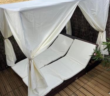 Salle de bainsPapier toilette, Baignoire, Serviettes, Shampoing, Toilettes, Baignoire spa, Articles de toilette gratuits, Salle de bains privative, Sèche-cheveux, Peignoir, SavonHigh-techStation d'accueil pour iPod, Télévision, Télévision à écran platGénéralClimatisation, Clé d'accès, Poubelles, Détecteur de fumée, Entrée privée, Parquet, ChauffageActivitésBain à remousCuisineProduits ménagers, Ustensiles de cuisine, Kitchenette, Micro-ondes, Réfrigérateur, Machine à café, Bouilloire électrique, Verres à vinCoin salonCanapéVueVue sur le jardin, VueEn extérieurTerrasse, Espace repas extérieur, Mobilier d’extérieurCaractéristiques du bâtimentIndépendant, MitoyenEspaces piscine et bien-êtreServiettes de piscineRestaurationBouteille d'eau, Chocolats ou biscuitsÉquipements en chambreOreiller hypoallergénique, Prise près du litDistanciation physiqueClimatiseur indépendant dans les hébergementsNettoyage et désinfectionGel hydroalcoolique |