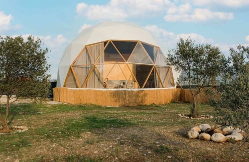 You’ll step onto the land and find olive trees on desert terrain in a quiet village at the base of the Taurus Mountains. Years ago, the property held a greenhouse for agriculture and now it holds a kind of greenhouse for people: a climate controlled and fully equipped geodesic dome. Lay under the shade of the largest olive tree tree in our hammock or lounge on the deck in one of our Tamarack chairs to take in the fresh air and mountain views. For dinner, use the charcoal bbq to make a delicious meal.