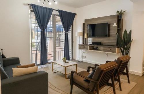 Salle de bainsShampoing, Serviettes, Toilettes, Sèche-cheveux, Brosse à dents, Douche, Serviettes / linge de lit (frais supplémentaires), Chaussons, Toilettes supplémentaires, Savon, Papier toilette, Salle de bains privative, Articles de toilette gratuitsHigh-techTélévision à écran plat, Chaînes satellite, Chaînes du câble, Télévision, Service de streaming (ex. Netflix), Vidéo, Hotspot mobileGénéralMoquette, Climatisation, Détecteur de fumée, Insonorisation, Ventilateur, Poubelles, Entrée privée, Sol carrelé / en marbre, Clé d'accès, Matériel de repassage, Carte d'accès, Fer à repasser, ExtincteurEn extérieurBalcon, Espace repas extérieur, PatioCuisineProduits ménagers, Cuisine, Bouilloire électrique, Ustensiles de cuisine, Réfrigérateur, Table à manger, Lave-lingeCoin salonCanapé, Coin salon, Bureau, Coin repasChambreDressing, Linge de maisonVueVue sur un site d'intérêt, Vue sur une rue calme, VueCaractéristiques du bâtimentAppartement privé dans un immeubleÉquipements en chambreLit pliant, Étendoir, Portant, Adaptateur, Canapé-lit, Prise près du lit, Oreiller sans plumes, Oreiller en plumes, Oreiller hypoallergéniqueDistanciation physiqueClimatiseur indépendant dans les hébergementsNettoyage et désinfectionGel hydroalcoolique |