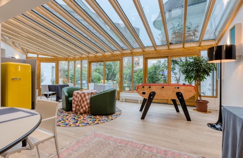 Né de la transformation d'un immeuble de bureaux, l'Hôtel du Jeu de Paume se place dans la catégorie des hôtels de charme. L'hôtel dispose de chambres à la décoration atypique et originale, tout en respectant un confort sensationnel. Cet hôtel chaleureux à Versailles présente une décoration soignée que l’on doit au designer N. Stadler. L'hôtel dispose d'un petit jardin fleuri. Son atmosphère chaleureuse et paisible vous permettra de passer un séjour relaxant. Idéalement situé à Versailles, l'Hôtel du Jeu de Paume vous permettra de visiter toutes les merveilles de la ville à pied. Grâce à son emplacement exceptionnel, vous pourrez rejoindre le château de Versailles en moins de 2 minutes. L'établissement est situé dans une rue paisible, à proximité de la rue de Satory, une rue très commerçante où vous trouverez de nombreux restaurants et autres petits commerces. Vous pourrez rejoindre Paris depuis la gare de Versailles Rive Gauche, située à 5 minutes à pied de l'hôtel. Toutes les chambres de l’Hôtel du Jeu de Paume sont équipées d’une télévision par câble à écran plat. La salle de bains est pourvue d’une douche, d’un sèche-cheveux et d’articles de toilette gratuits. Un plateau/bouilloire est fourni dans chaque hébergement. Vous pourrez déguster un petit-déjeuner continental dans une yourte sur place. Le petit-déjeuner est gratuit pour les enfants de moins de 3 ans. Vous séjournerez à quelques pas des rues animées de la ville avec leurs restaurants et leurs bars. L’hôtel est situé à 5 minutes à pied de la gare de Versailles-Château-Rive-Gauche, qui vous permettra de rejoindre directement la capitale.