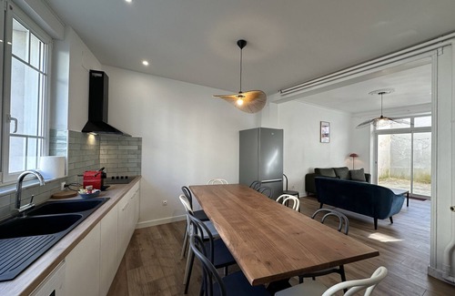 Vous serez à quelques pas de la magnifique cathédrale de Reims et des principales attractions touristiques. La maison dispose d'une cuisine entièrement équipée, d'un salon convivial et d'une salle à manger spacieuse, offrant un espace idéal pour se détendre après une journée de visites.