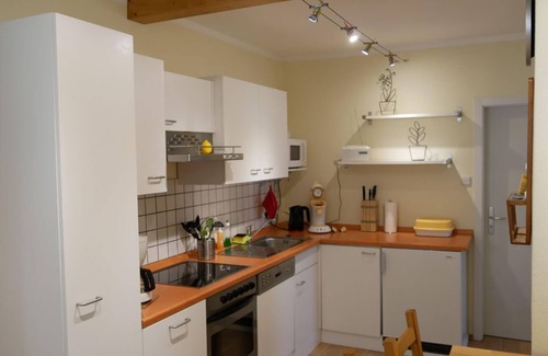 Nous aimerions vous présenter notre appartement dans le magnifique village de Kallstadt. L'appartement situé au rez-de-chaussée de notre ancienne maison vigneronne est un point de départ idéal pour de nombreuses activités en tous genres. Profitez du cadre magnifique pour de longues promenades, des balades à vélo et des promenades. Notre appartement a 2 chambres une cuisine et une salle de douche avec fenêtre. Le linge de lit, les serviettes, les torchons, les appels LAN sans fil et fixes sont fournis gratuitement. Le salon est équipé d'une télévision par satellite et d'une chaîne stéréo CD. Le canapé spacieux vous invite à vous attarder et à vous détendre. La chambre lumineuse et accueillante peut accueillir deux personnes dans le lit double (1,60 mx 2,00 m) avec pied ouvert. La cuisine est équipée de tout pour vivre votre créativité culinaire à votre guise. Outre une plaque vitrocéramique avec four à convection et lave-vaisselle, un four micro-ondes, un grille-pain, un cuiseur à œufs, une bouilloire, une cafetière (Aufbruhsystem) et une machine à café Senseo PAD avec PAD sont disponibles. L'équipement est complété par des couverts, des assiettes et des tasses, etc. pour 6 personnes. Le réfrigérateur avec congélateur 4 étoiles prend vos achats sans problèmes. La salle de douche avec fenêtre est lumineuse et conviviale. Autres équipements: Fer, planche à repasser, aspirateur, sac à dos et couverture pour pique-nique, collection de jeux, cartes de randonnée et de pistes cyclablesAppartement non-fumeurUn coin salon dans la cour avec un espace fumeur est installé dans la cour couverte. Pour les motocyclistes ou les cyclistes, un hébergement sûr et sec des vélos est inclus avec nous. Vous pouvez trouver plus d'informations sur notre page d'accueil.