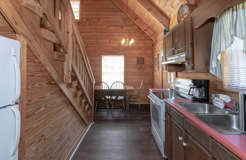 Cette cabine est située à distance de marche de notre belle piscine, pavillon de la chapelle et pelouse inférieure. Il a 1 lit / bain en bas et 1 lit / bain en haut. La chambre du bas a 1 lit king et la salle de bains à l'étage a un lit queen et double combo lit. Il comprend 1 baignoire à jets intérieure, un foyer au bois, un lave-linge / sèche-linge et une cuisine complète.