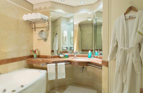 RestaurationPlateau / bouilloire, MinibarSalle de bainsPeignoir, Articles de toilette gratuits, Toilettes, Chaussons, Baignoire spa, Salle de bains privative, Sèche-cheveux, Baignoire ou douche, BaignoireGénéralInsonorisation, Moquette, Climatisation, Coffre-fortHigh-techTélévision à écran plat, Chaînes du câble, TéléphoneCoin salonBureau, Coin salonVueVue sur la montagne, Vue sur la piscine, Vue, Vue sur la merCuisineMachine à café, Bouilloire électriqueServicesAccès au salon exécutifChambreArmoire ou penderieÉquipements de sécuritéPurificateurs d'airDistanciation physiqueClimatiseur indépendant dans les hébergementsNettoyage et désinfectionGel hydroalcoolique |
