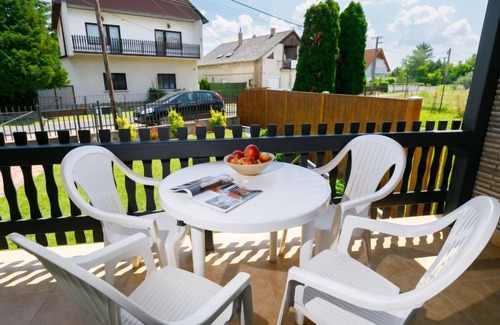 Balatonkeresztúr à 18 km de Keszthely: Maison jumelée "Hibiscus". Dans la localité, à 600 m du lac, à 950 m de la plage, à 150 m du canal. A usage privé: jardin 300 m2, pré. Douche extérieure. Infrastructures de la Maison: Connexion WIFI. A disposition: vélos (4). Magasins 100 m, magasin d'alimentation, restaurant 300 m, piscine 600 m. Port plaisance 150 m.