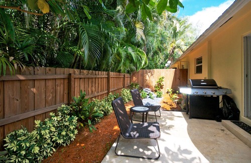 Réglage avec piscine et aménagement paysager luxuriant jardin tropical. Totalement mis à jour avec des finitions contemporaines. Master suite offre curseurs à tranquille espace zen clôturé en plein air w / patio en marbre, des jardins luxuriants et un espace barbecue. Accès à la plage. Magnifiquement entretenu communauté.
