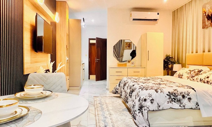 Cet appartement au charme incontestable à Accra est la solution idéale pour explorer les environs en toute simplicité. Grâce au parking de l'hébergement, vous pourrez aisément faire le trajet de 4 minutes jusqu'à Accra Mall ou de 5 minutes jusqu'à W.E.B. DuBois Center.