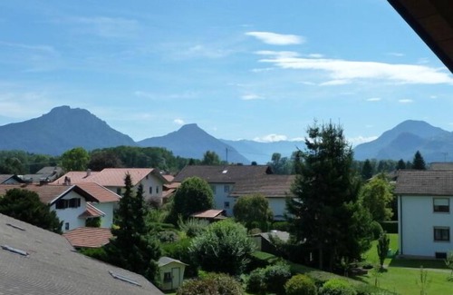 Himmel+Berge-Ferienwohnung, 65 qm, 2 Schlafzimmer, Wohnzimmer mit Schlafcouch, Eßecke, Küchenzeile, Dusche, WC, Balkon | Appartement dans Raubling