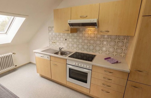 Apt 3 pièces 78 m2, à l'étage supérieur. Aménagement plaisant: séjour/salle à manger avec 1 divan-lit, Télévision numérique et écran plat. Sortie sur le balcon. 1 chambre avec 2 lits (100 cm, longueur 200 cm). 1 chambre avec 1 lit double (2 x 100 cm, longueur 200 cm). Cuisine (four, lave-vaisselle, 4 plaques vitrocéramiques, grille-pain, bouilloire électrique, cafetière électrique). Bain/WC. Grand balcon. Mobilier de balcon. A disposition: lave-linge, sèche-linge. Internet (Connexion WIFI, gratuit). Veuillez noter: logement non-fumeur. Les réservations ne sont autorisées que pour des vacances.