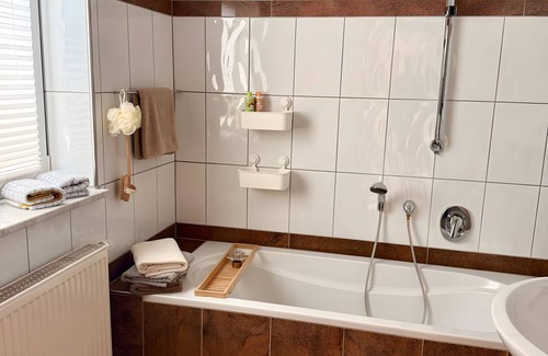 The apartment is situated in the basement with a private entrance. There are four parking spaces available on the property. A maximum of two pets is allowed (an extra fee applies for pets). Smoking is not permitted in this accommodation. Security cameras and/or audio recording devices are installed on the property. The accommodation has guidelines for proper waste separation; you will receive more information on site. Energy-saving lighting is provided and part of the electricity is generated by photovoltaic systems. A convenient self-check-in system is available.