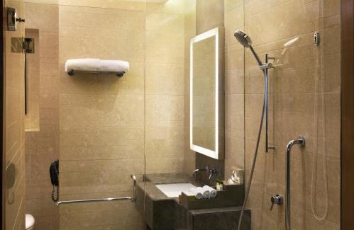 RestaurationMinibar, Plateau / bouilloire, Bouteille d'eauSalle de bainsChaussons, Salle de bains supplémentaire, Savon, Baignoire ou douche, Salle de bains privative, Douche, Toilettes supplémentaires, Serviettes, Baignoire, Papier toilette, Peignoir, Articles de toilette gratuits, Bonnet de douche, Toilettes, Sèche-cheveux, Après-shampoing, Brosse à dents, ShampoingGénéralFer à repasser, Coffre-fort, Détecteur de monoxyde de carbone, Poubelles, Coffre-fort pour ordinateur portable, Matériel de repassage, Climatisation, Carte d'accès, Détecteur de fumée, CasiersHigh-techTélévision à écran plat, Chaînes satellite, Téléphone, TélévisionCoin salonBureau, Canapé, Coin salonVueVue sur la ville, VueServicesService de réveilCuisineSèche-linge, Bouilloire électriqueChambreArmoire ou penderie, Linge de maisonÉquipements en chambreOreiller sans plumes, Oreiller en plumes, Prise près du litServices exclusifsCollations et boissons gratuites dans le salon exécutif (soirée), Accès gratuit à la salle de sport |