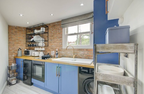 Set just off the town’s High Street, this classic Norfolk coastal style home is a real treat for its lucky guests, beautifully fusing traditional charm and chic, modern styles! The large living room has all the space a couple could need for relaxing, and then some! Two large button-back Chesterfield sofas sit before the quaint fireplace and large TV, so you can take all the time you need to switch off, unwind and enjoy one another’s company, while to one side there’s a dining table for enjoying delicious meals. And you can thoroughly enjoy preparing said meals in your fabulous corner kitchen, fully-equipped with a surprising number of modern amenities tucked away in it!